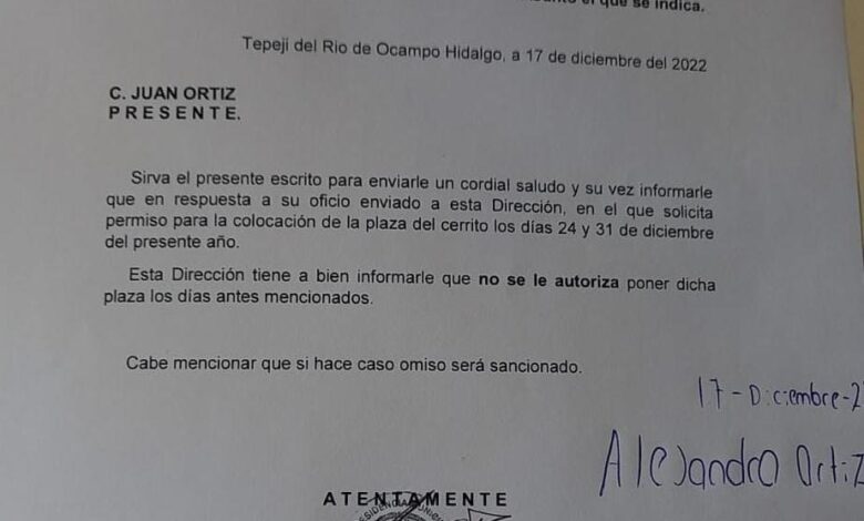 Desde el día 17 de diciembre del 2022 se notificó que la Dirección de Reglamentos y Espectáculos Públicos del Municipio de Tepeji, no autorizaba la instalación de este tianguis en días sábado, ya que este tipo de comercio fue constituido específicamente para los domingos.