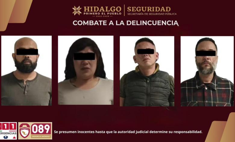 PACHUCA DE SOTO, 05 ABR /NEWS HIDALGO/.- Derivado de la Estrategia Nacional contra la Extorsión, elementos de la Secretaría de Seguridad Pública de Hidalgo (SSPH) aseguraron en Pachuca de Soto a tres hombres y una mujer originarios del Estado de México y la Ciudad de México, quienes conformaban una célula dedicada a la extorsión haciéndose pasar por servidores públicos de la Secretaría de Turismo del Estado de Hidalgo.