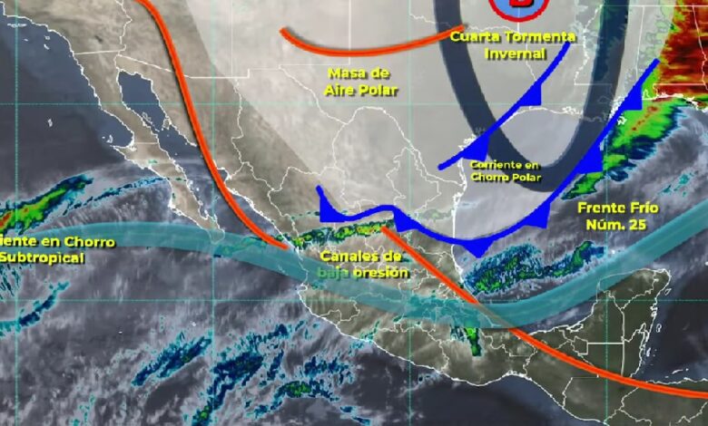 La masa de aire polar asociada al sistema frontal mantendrá el ambiente matutino y nocturno de muy frío a gélido con heladas en el noroeste y norte del territorio mexicano y ocasionará descenso de temperatura en el noreste y oriente del país; se pronostican temperaturas mínimas de -15 a -10 grados Celsius con heladas en las sierras de Chihuahua, Durango y Sonora; de -10 a -5 grados con heladas en las zonas serranas de Baja California, Coahuila y Zacatecas.