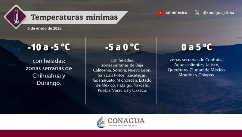 Pronóstico de temperaturas mínimas para hoy 06 de enero de 2026: