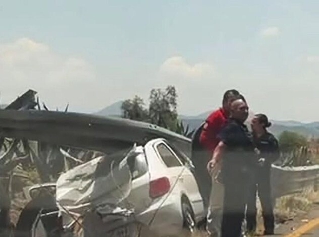 ZEMPOALA, 21 ABR /NEWS HIDALGO/.- Pasajeros de un automovil se salvaron de milagro en la carretera federal Pachuca – Ciudad Sahagún, a la altura de Universidad Politécnica de Pachuca en el municipio de Zempoala, luego de que el auto compacto color blanco de salió de la cinta asfáltica y quedaron debajo de la barra metálica de contención.