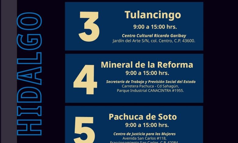 Asimismo, en el estado de Hidalgo, se realizarán jornadas de reclutamiento el 3 de febrero en Tulancingo, el 4 de febrero en Mineral de la Reforma y el 5 de febrero en Pachuca de Soto.