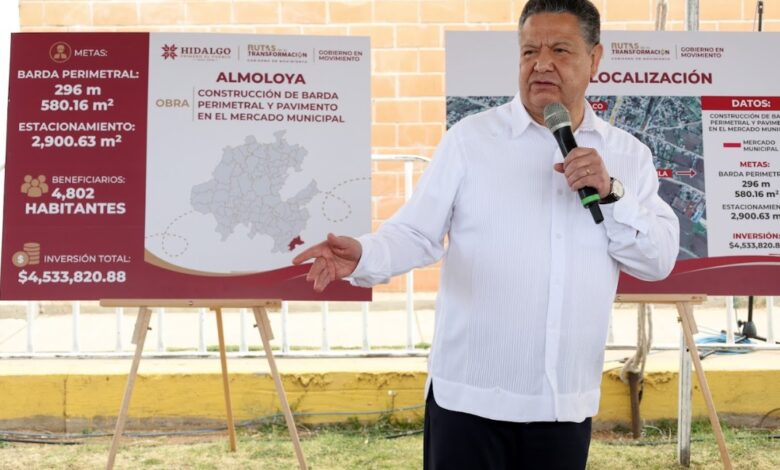 ALMOLOYA DE JUÀREZ, 14 FEB/NEWS HIDALGO/.- En el marco de las revisiones de obra previstas durante las Rutas de la Transformación-Gobierno en Movimiento, el titular del Ejecutivo en Hidalgo, Julio Menchaca Salazar, encabezó la supervisión de la construcción de la barda perimetral y la pavimentación del estacionamiento en el mercado municipal de Almoloya, acción en la que se invierten 4 millones 533 mil 820 pesos.