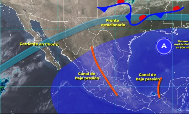 PACHUCA DE SOTO, 08 DIC/NEWS HIDALGO/.- Para este jueves, un canal de baja presión en el sureste mexicano, asociado con la entrada de humedad del Golfo de México y Mar Caribe, ocasionará lluvias fuertes (de 25 a 50 milímetros [mm]) en Chiapas; chubascos (de 5 a 25 mm) en Campeche, Oaxaca, Quintana Roo, Tabasco y Veracruz, así como lluvias aisladas (de 0.1 a 5 mm) en Colima, Guerrero, Jalisco, Michoacán, Puebla y Yucatán.