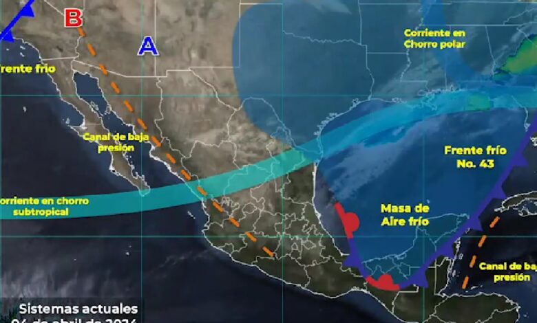 PACHUCA DE SOTO, 04 ABR/NEWS HIDALGO/.- Durante las siguientes horas, el frente frío número 43 recorrerá la Península de Yucatán hacia el Mar Caribe, en interacción con un canal de baja presión que se