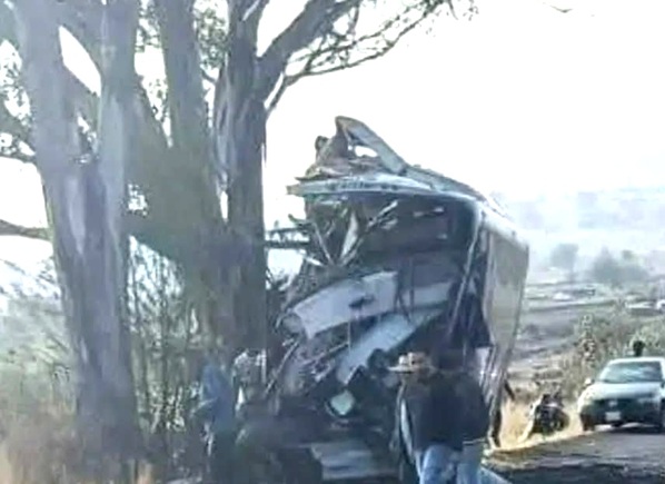 PACHUCA DE SOTO, 22 ABR /NEWS HIDALGO/.- Un trágico accidente se registró hoy en la carretera estatal San Juan del Río – Amealco en el estado de Querétaro, un autobús de pasajeros se impacto contra el tronco de un enorme árbol lo que le costó la vida a seis pasajeros y varios más resultaron lesionados.
