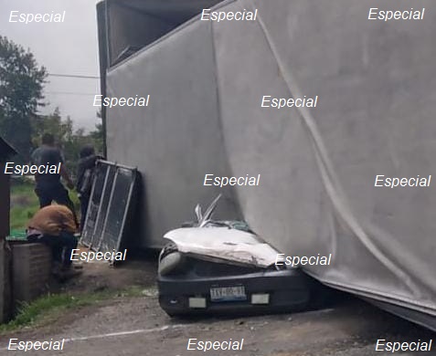 Los hechos se registraron en la carretera federal México – Tuxpan, a la altura de de la localidad de Venta Quemada en Acaxochitlan, luego que el tracto al parecer realizó una maniobra forzada en una curva lo que causó que la caja se desprendiera y cayera sobre un auto Chevrolet Chevy, color blanco que se encontraba estacionado sobre el acotamiento y que fortuitamente estaba sin tripulantes ya que su conductor se encontraba comiendo ahí cerca.