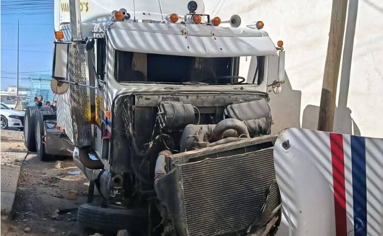 PACHUCA DE SOTO, 07 ENE/NEWS HIDALGO/.- Una barda derribada, una camioneta dañada y una mujer con crisis nerviosa fue el saldo de la salida de camino y choque contra objeto fijo del tráiler que esta tarde chocó junto a una tienda Oxxo donde se estampo contra una barda perimetral y una camioneta cuyos ocupantes entraron en crisis nerviosa.