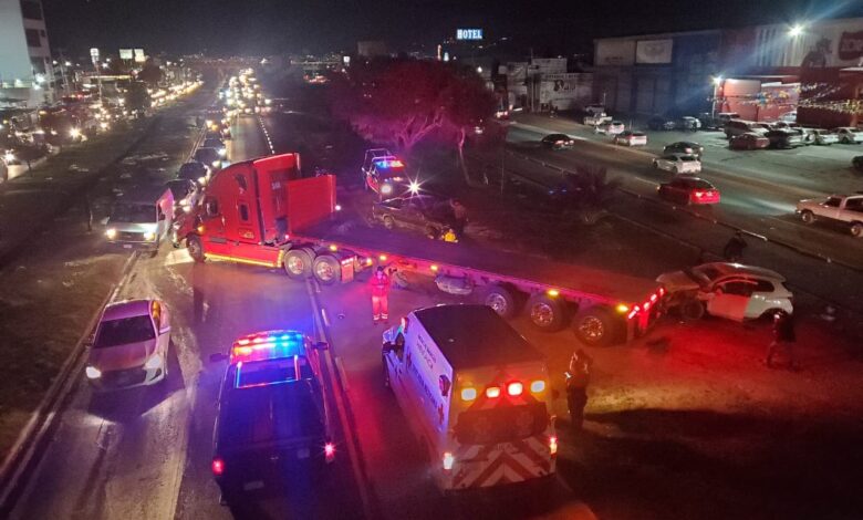 En el hecho de tránsito dos mujeres de 62 y 20 años, tuvieron que ser hospitalizadas ya que el auto GMC, color blanco, con matricula de Hidalgo que tripulaban, fue impactado por un tracto camión Freightliner, color rojo con caja seca que prácticamente quedó atravesado en ambos carriles de la transitada vía.