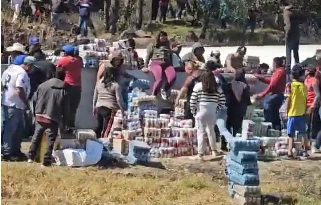 PACHUCA DE SOTO, 05 ENE /NEWS HIDALGO/.- Un camión de transporte cargado con varias toneladas de bebidas alcohólicas volcó sobre la carretera federal México – Querétaro a la altura del kilómetro 100, en los límites de Querétaro e Hidalgo, como suele suceder en este tipo de accidentes, los productos que transportaba fueron blanco de la rapiña humana que enseguida se hizo presente en el lugar del accidente.