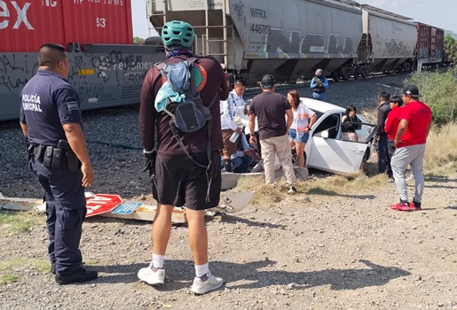 El hecho de tránsito se registró este fin de semana en el cruce ferroviario en el lugar conocido como El Destello, donde la locomotora impacto un auto Mazda color blanco, con matrícula de Querétaro el cual era conducido por una mujer de 30 años quien era acompañada de una menor de diez, quienes resultaron lesionadas.