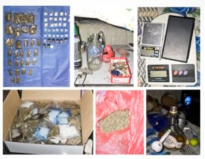 Derivado de los trabajos de inteligencia se decomisaron 2 mil 481 dosis de diferentes sustancias tóxicas; además, se encontraron 2 plantas de presunta marihuana; 2 armas de fuego cortas artesanales junto con 2 cartuchos de arma corta, y una variedad de pipas y aditamentos relacionados con el consumo de sustancias ilícitas.