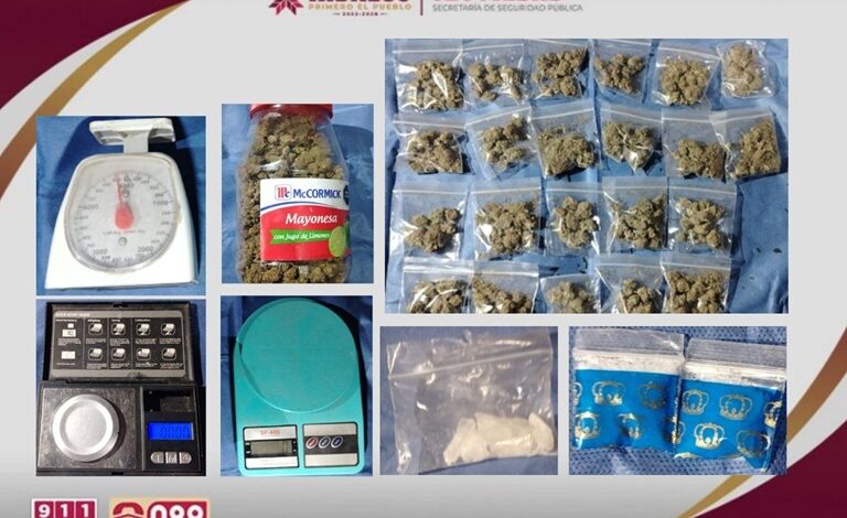 Durante la intervención, se aseguró un total de 1,520 dosis de hierba seca verde con características propias de la marihuana, así como 133 dosis de sustancia granulada con características del narcótico conocido como cristal, evitando su posible distribución en la región.