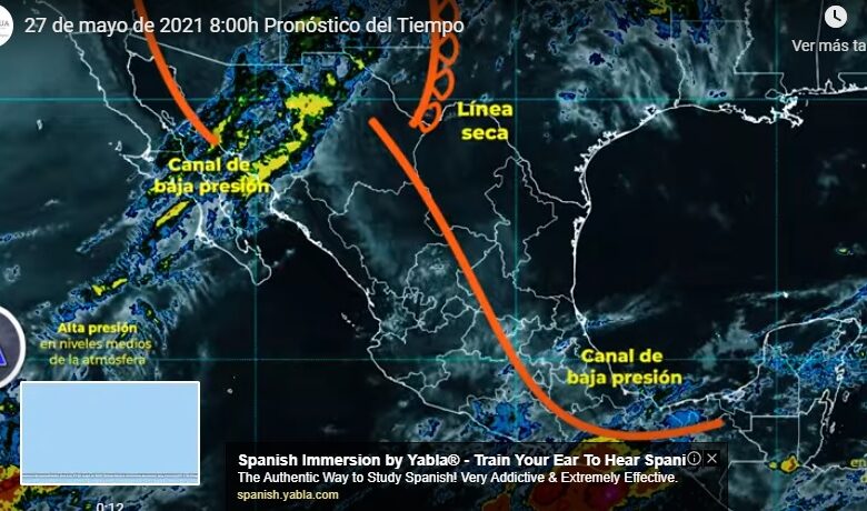 CIUDAD DE MÉXICO, 27 MAY /NEWS HIDALGO/.- Hoy, una línea seca y un canal de baja presión se localizarán sobre el norte del país, e interaccionarán con inestabilidad en niveles altos de la atmósfera, lo que ocasionará rachas de viento superiores a 60 kilómetros por hora (km/h) en Chihuahua, Coahuila, Nuevo León y Tamaulipas, lluvias de diferente intensidad acompañadas de descargas eléctricas, granizadas y la probable formación de torbellinos en Chihuahua y Coahuila, y tolvaneras en Nuevo León y Tamaulipas.