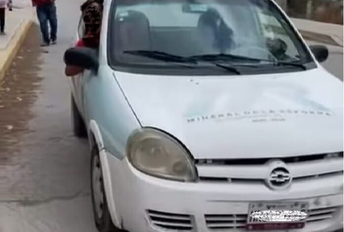 Los servidores públicos fueron captados espiando y tomando fotos al candidato a distancia en un vehículo oficial Chevrolet Chevy propiedad del gobierno municipal.