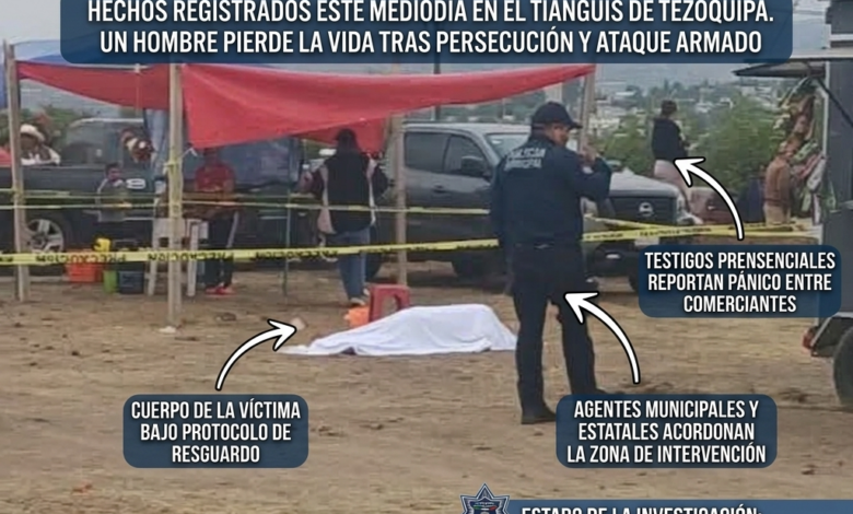 CUAUTEPEC DE HINOJOSA, 05 ABR /NEWS HIDALGO/ – El estruendo de las detonaciones de arma de fuego rompió la calma dominical en la localidad de Tezoquipa. En un ataque directo que refuerza la atmósfera de inseguridad que impera en esta zona, considerada uno de los bastiones del robo de hidrocarburo en la entidad, un hombre fue asesinado a balazos frente a decenas de familias y comerciantes.