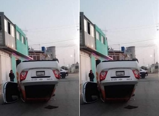 De acuerdo a la policía local la volcadura ocurrió en la colonia Fundación,  un auto de alquiler marca Chevrolet, chocó contra un objeto fijo y luego volcó .