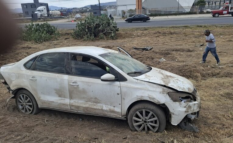 ZAPOTLÁN, 23 MAR /NEWS HIDALGO/.- Se registró una salida de camino y volcadura de un auto particular en la carretera federal México-Pachuca, a la altura del kilómetro 76, en el municipio de Zapotlán de Juárez, un vehículo Volkswagen blanco perdió el control y volcó sobre el camellón central.