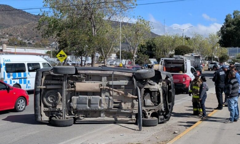 PACHUCA DE SOTO, 23 DIC/NEWS HIDALGO/.- Esta tarde se suscitó la volcadura de un vehículo particular en pleno bulevar Minero a la altura del Cereso de Pachuca.