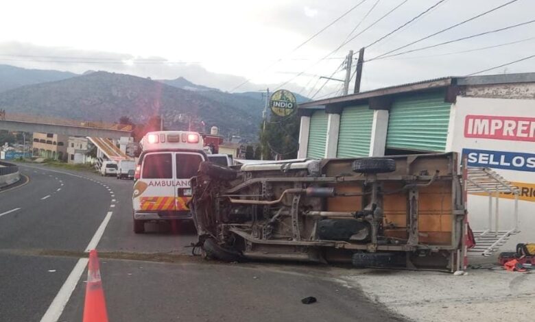 El percance tuvo lugar a escasos metros de unos negocios, la camioneta quedó recostada con dirección a Pachuca. La camioneta Nissan color blanco, con caja de redilas cuyo conductor de 43 años resultó ileso.
