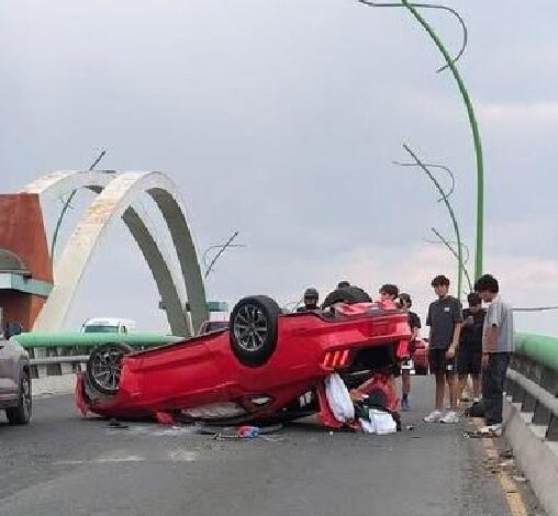 En el tramo vial quedó sobre su toldo un auto deportivo marca Ford tipo mustag, color rojo, cuyos ocupantes resultaron con lesiones leves.