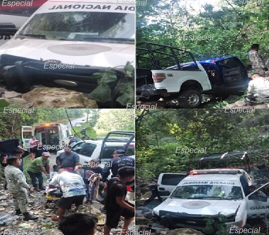 CHAPULHUACÁN, 05 JUN/NEWS HIDALGO/.- A más de 50 metros de profundidad se fue una patrulla de la Guardia Nacional la cual cayó a un barranco en la carretera estatal Pisaflores-Chapulhuacan.