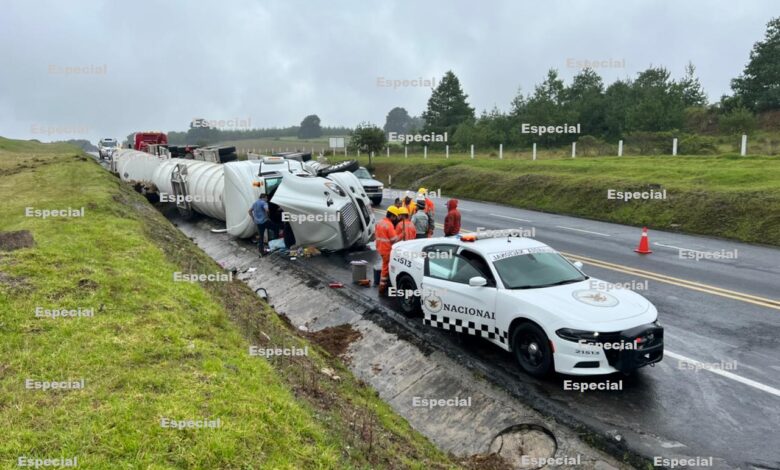 El chófer del tracto camión Internacional, con doble salchicha, color blanco, con placas del servicio público federal, resultó ileso y fue quien dio parte al número de emergencia.