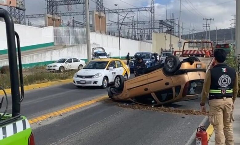 MINERAL DE LA REFORMA, 14 OCT/NEWS HIDALGO/.- Un vehículo particular volcó en el bulevar de acceso al fraccionamiento San Fernando en el municipio de Mineral de la Reforma.